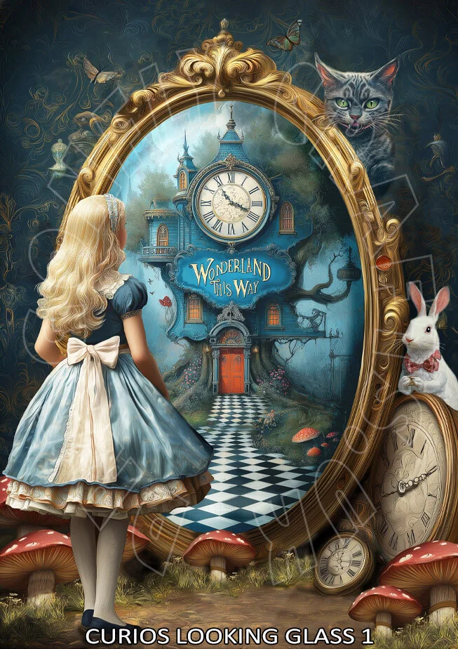 Декупажна хартия Curios looking glass 1 Rice Paper — A1, подходяща за декориране на мебели.