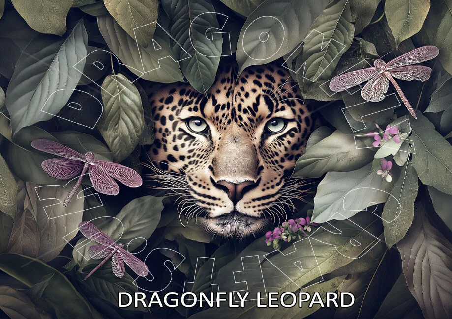 Декупажна хартия Dragonfly Leopard Rice Paper — A2, подходяща за декориране на мебели.